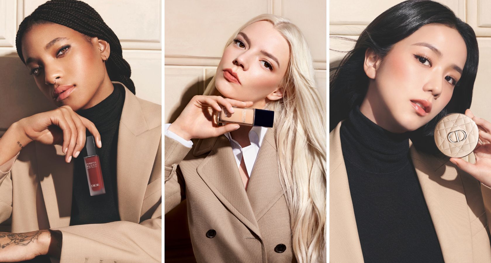 По-силни, по-зашеметяващи и по-ослепителни от всякога: трите посланички на красотата на модната Къща образуват блестящо трио, което отваря нова глава в историята на Dior Forever. В тази жизнена кампания се разкрива напълно връзката, която обединява холивудската актриса Аня Тейлър-Джой, музикалната икона Уилоу Смит и кралицата на K-Pop Джису. Младите жени са много повече от посланици, те носят нова енергия, когато се срещат и с радост споделят ежедневието си и се вдъхновяват взаимно.