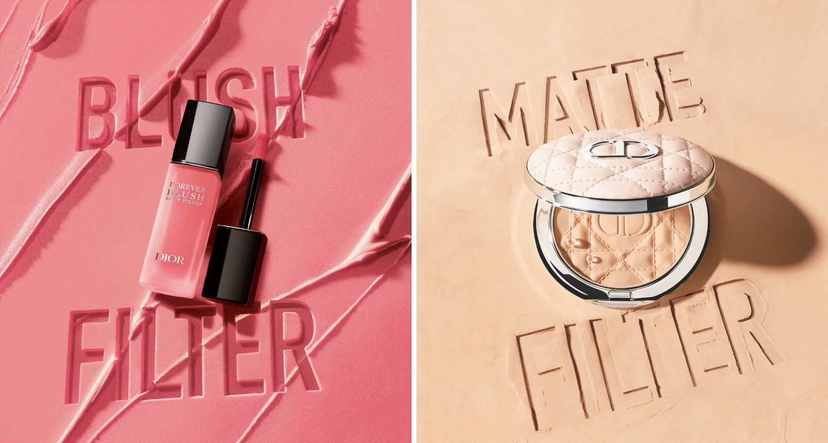 В истински подвиг на формулирането, пудрите Dior Forever Nude Matte Filter и Dior Forever Nude Radiant Filter са създадени чрез иновативен производствен процес, който включва хиалуронова киселина. При всяко нанасяне пудрата незабавно хидратира кожата, която остава комфортна от сутрин до вечер. Изваяни с новия мотив cannage, се представят в опаковка, вдъхновена от ДНК-то на модната къща, налична в цвят nude beige.
