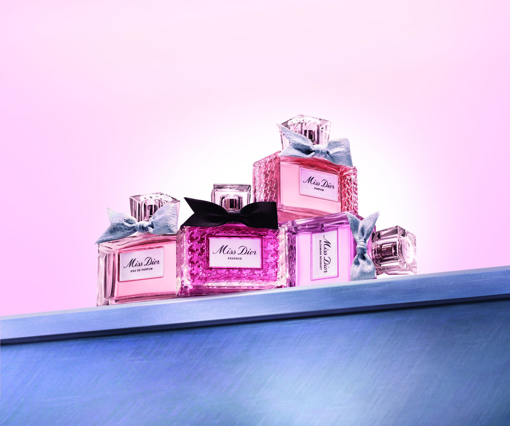 Новата Miss Dior Essence се нуждаеше от изключително значима и вдъхновяваща презентация. Известният „флакон, скроен като костюм“ възвръща оригиналните си цветове и се украсява с известната грациозна и дръзка панделка. Тя прилича на тази от 1948 г., но сега е завързана с ценна черна лента от гросгрейн. За първи път капачката му е изработена от изтънчено стъкло.Четирите му страни са елегантно матирани и гравирани с емблематичния за Dior мотив. Завръщане към същността на Miss Dior.