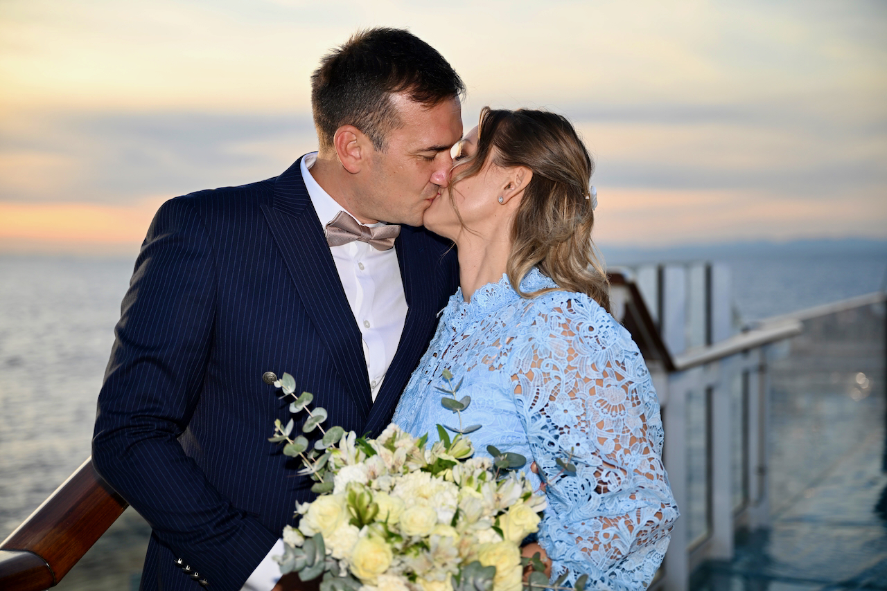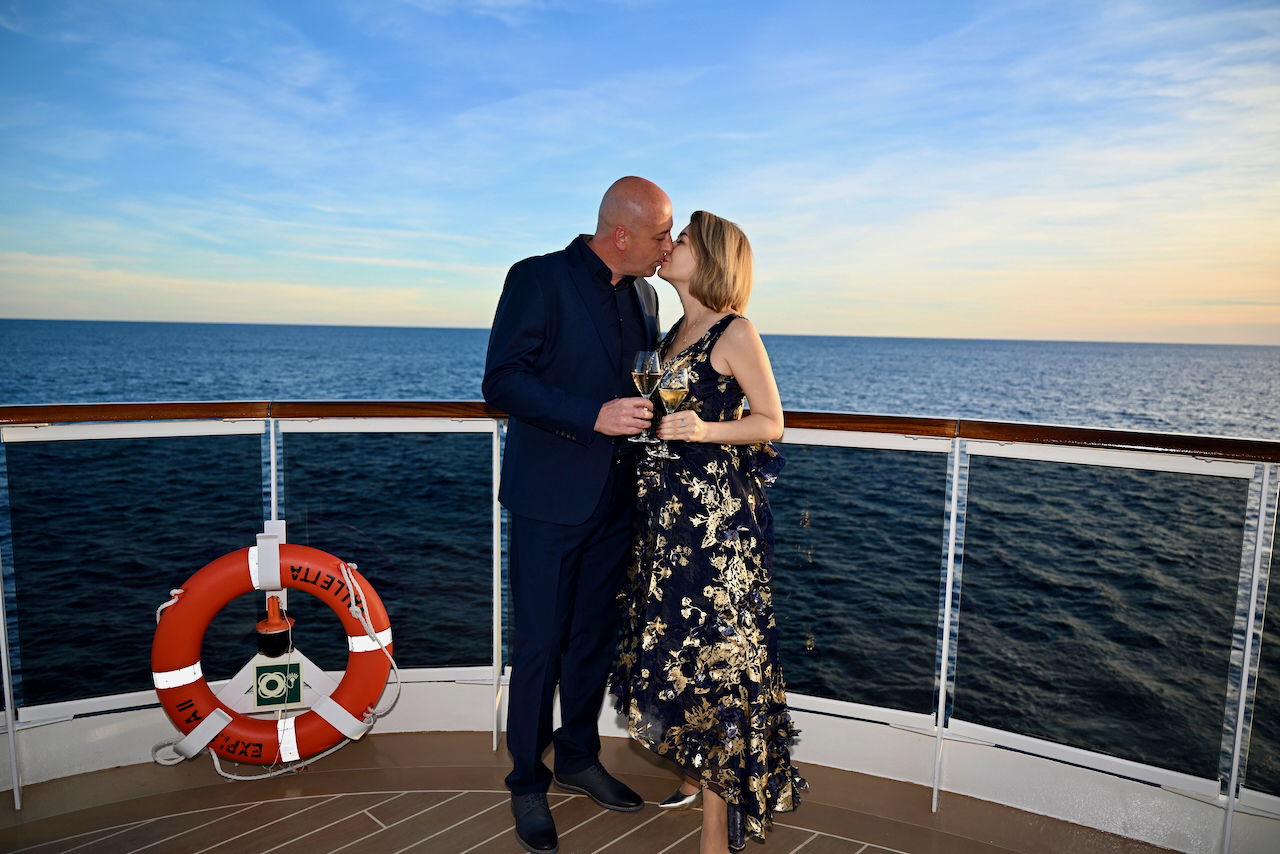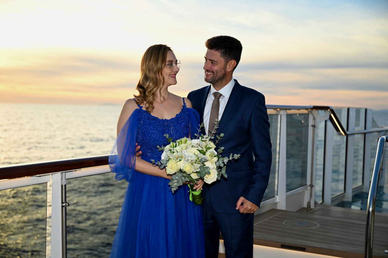 Кулминацията дойде с подновяването на обетите – интимен и красив ритуал, изпълнен с емоция. Любопитен и изискан детайл беше фактът, че капитанът на кораба се оказа жена, което придаде допълнителна мекота и внимание към самия момент. Така пътуването завърши не просто с аплодисменти, а с усещането за принадлежност.