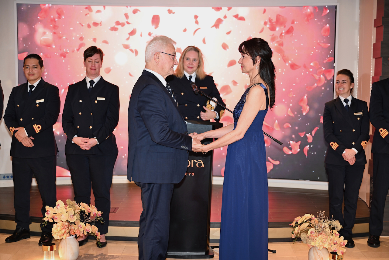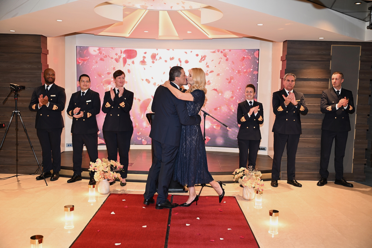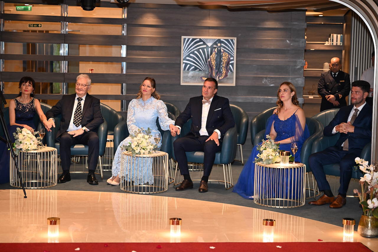 Кулминацията дойде с подновяването на обетите – интимен и красив ритуал, изпълнен с емоция. Любопитен и изискан детайл беше фактът, че капитанът на кораба се оказа жена, което придаде допълнителна мекота и внимание към самия момент. Така пътуването завърши не просто с аплодисменти, а с усещането за принадлежност.